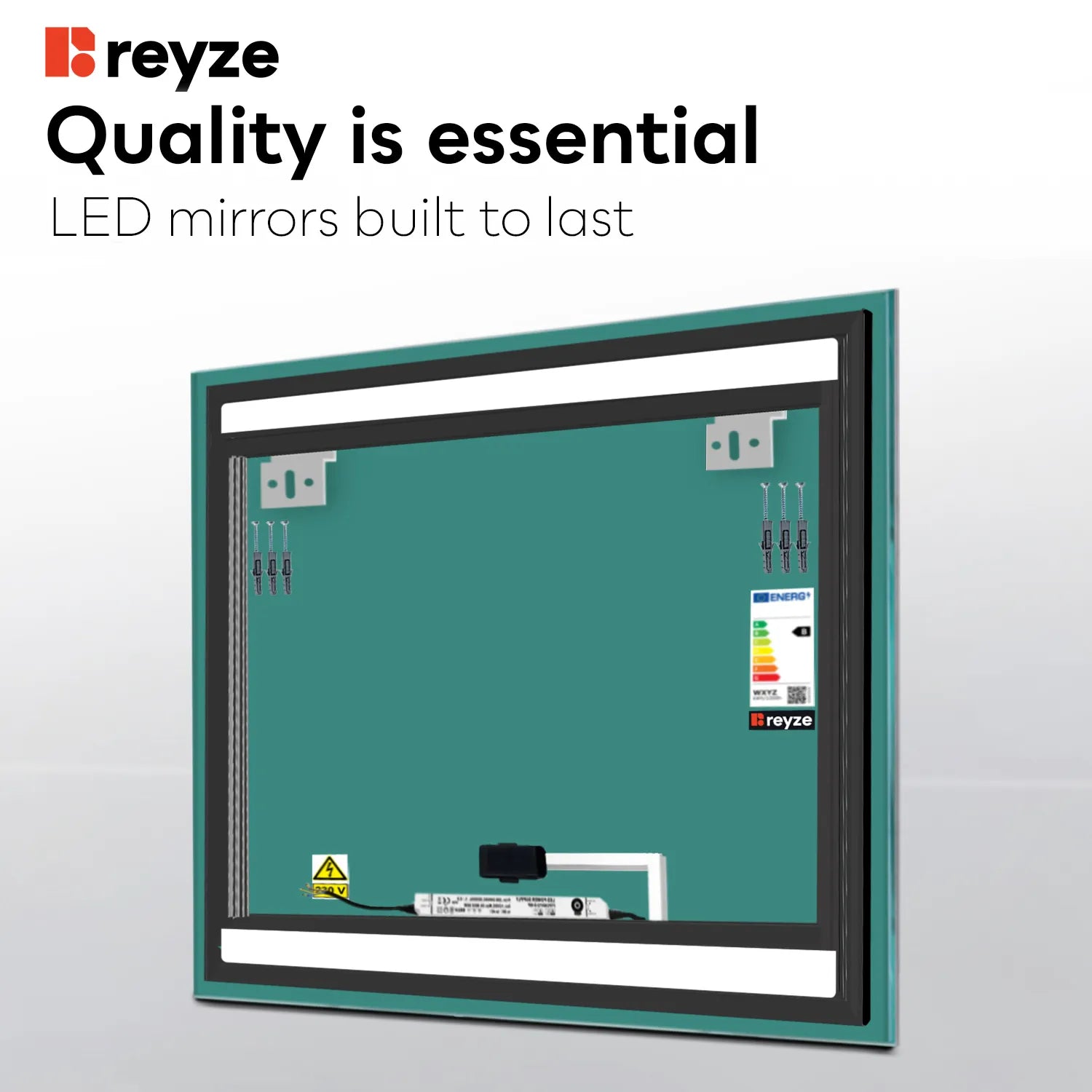 Reyze mirrors feature a fast and powerful demisting system that heats the mirror glass to 30–40°C within 3–5 minutes — faster and more effective than standard anti-fog mirrors.
